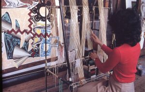 We got our biggest and most important commission in 1984. One of the Dovecot’s directors knew the CEO of PepsiCo, Don Kendall, an avid art collector who had created a sculpture park and an art collection at the company headquarters at Purchase in upstate New York. The Hon David Bathurst convinced Mr Kendall that he should commission a set of eleven tapestries designed by the prominent artist, Frank Stella.
